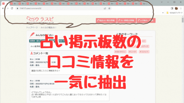 ウラスピ掲示板の電話占いウィルの3763件の口コミ情報を抽出