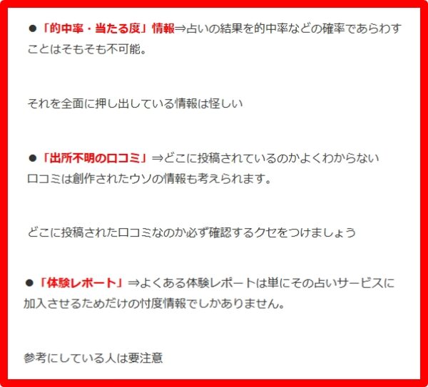 | 的中率(未来・時期) | ★★☆☆☆(相談者を励ますためか強烈な「アゲ」が入るため、未来が外れたという指摘が多い) |
